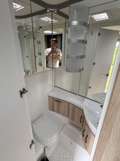 Kompaktwaschraum mit Waschbecken und Toilette und Stauraum Abwassertrank 23,5 Liter rollbar, 1x 230 V Steckdose